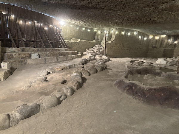 地下は広大な石の空間がライトアップされていて、とても幻想的な雰囲気。