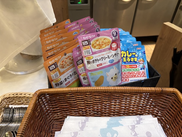 種類が豊富で、子供が食べられるものが必ず見つかる安心感があります。離乳食は、市販のパウチタイプの物が数種類用意されていました。