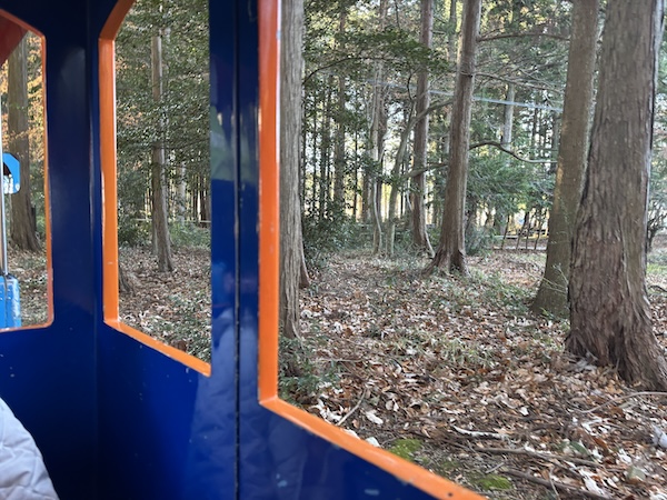 列車が動き出すと、心地よい風がふわっと吹き抜け、千本松牧場の森の中をゆっくりと進みます。