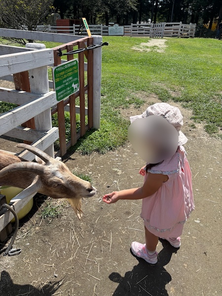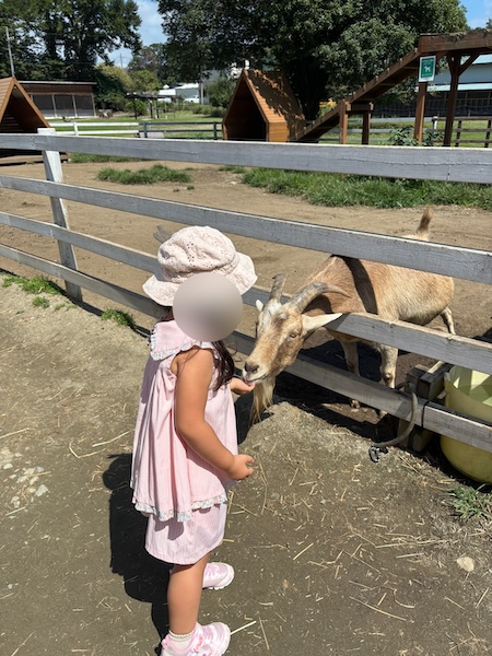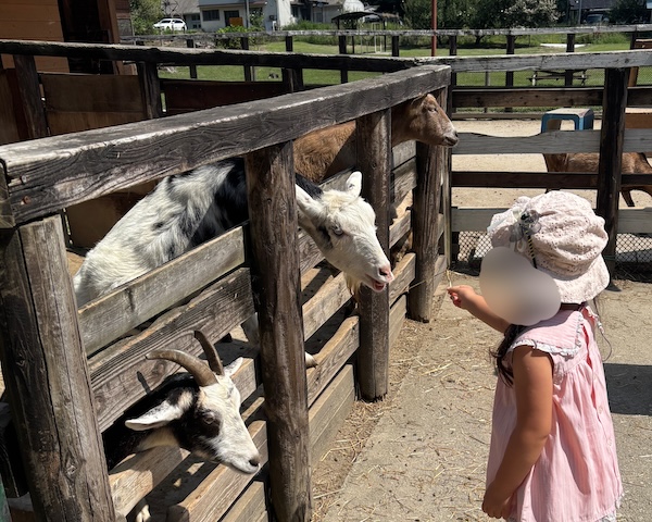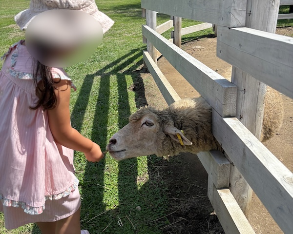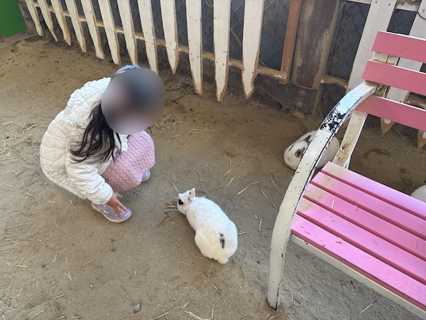 ヤギも、うさぎも、羊も、それぞれ違う可愛さがあって、娘は「次はあの子にあげる!」と小さな手で上手に牧草を差し出していて、その姿を見ているだけで、親としても胸がきゅんとする時間でした。