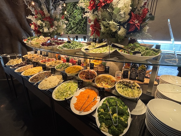 サラダ・デザートが並ぶビュッフェも充実していて、「シュラスコ=お肉だけで不安…」という人でも安心です。