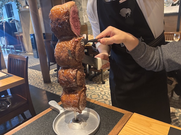 塊のまま串に刺し岩塩のみで焼き上げたジューシーなお肉を、「パサドール」と呼ばれるスタッフさんがそのままの状態でテーブルまで運び、目の前で切り分けて提供するスタイル。