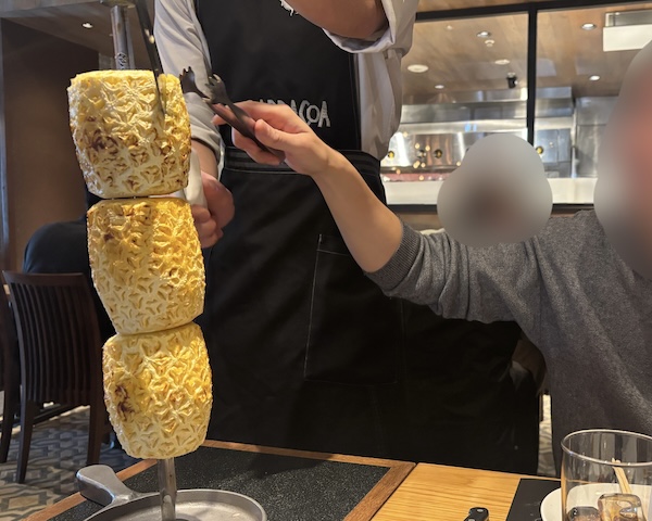 バルバッコアで一番人気で、ナイフでスライスされるのを自分でトング受け取るライブ感も楽しい!