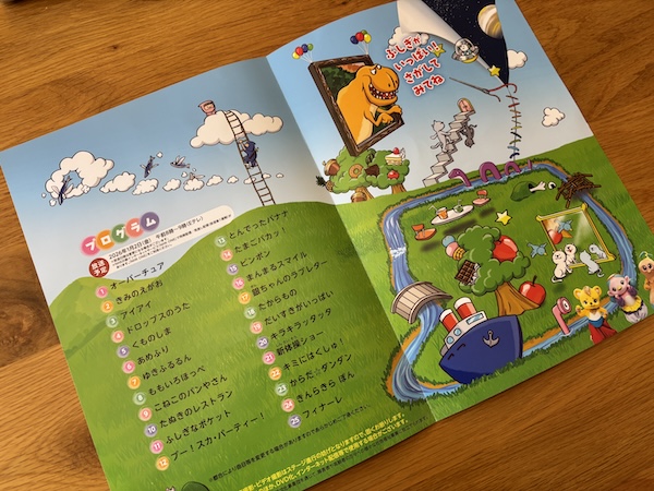 入場時に配られた、厚紙でできたリモコンには、ボタン風のイラストが描かれていて、ステージの進行に合わせて、子どもたちも一緒に参加する場面がありました。